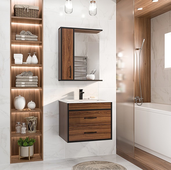Мебель для ванной комнаты 1 Марка. Коллекция "Vortex" орех ноче тортона/монолит найт