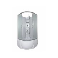 Душевая кабина без крыши; центральная стойка, держатель для лейки, ручной душ 3-х позиционный, смеситель из латуни с керамическим картриджем, полочки (3 шт), сиденье; высокий поддон с покрытием AntiSlip со съемным экраном (Н=46 см); сифон. Передняя часть - матовое стекло, профиль матовый хром. Задняя стенка - белый акрил из 2-х частей. Комплектация товара может отличаться от представленной на сайте.Полную информацию о товаре,изготовителе и технических характеристиках уточняйте у менеджера.