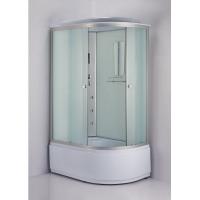 Акриловый поддон на каркасе высокий 45 см. Гидромассаж 6 форсунок, сифон с гофрой, крыша, тропический душ, ручной душ + крепление, смеситель 3-х режимный, полочка, электронный пульт, вентиляция, радио, зеркало, сиденье в поддоне. Задние стенки - стекло белое матовое; переднее стекло матовое; центральная панель - пластик; профиль матовый. Экран съемный.
