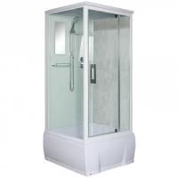 Душевая кабина с крышей; верхний душ металлический "EASY CLEN", ручной душ 3-х позиционный на штанге, штанга для ручного душа, вентеляционные отверстия, зеркало, смеситель из латуни с керамическим картриджем, полка (2 шт.), поддон 38 см, сифон с гофротрубой. Дверь распашная. Стекло 6 мм. Задняя стенка - крашеное непрозрачное белое стекло. Фронтальное стекло и боковые стекла прозрачные. Дверь - стекло прозрачное.