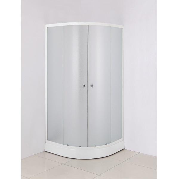 Поддон акриловый низкий 13 см., глубина 5 см, профиль матовый хром, сифон с гофрой, каленое переднее стекло матовое. Экран несъемный.